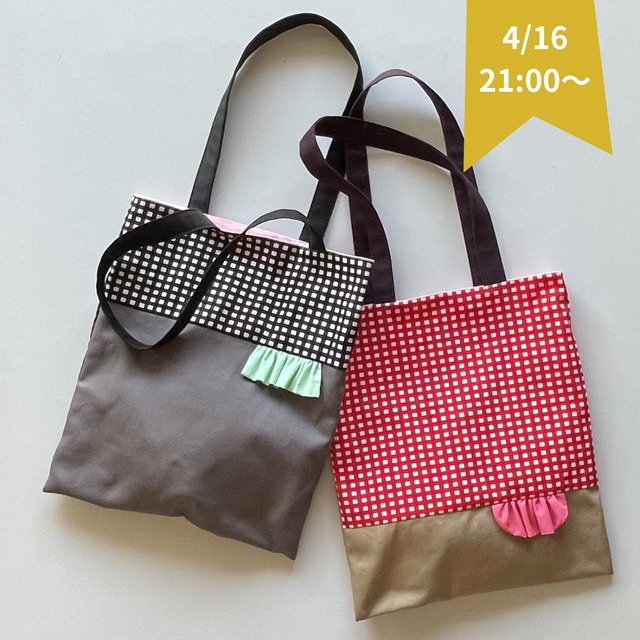 ちょこっとフリルの長方形トートバッグ(配色オーダーも可能)