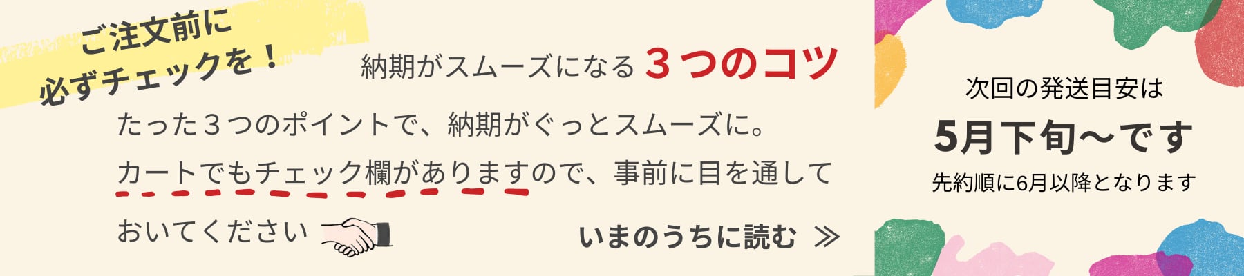 制作やお届けがスムーズに進むように、『●ご購入前必読●大切なご案内』というページを作りました。