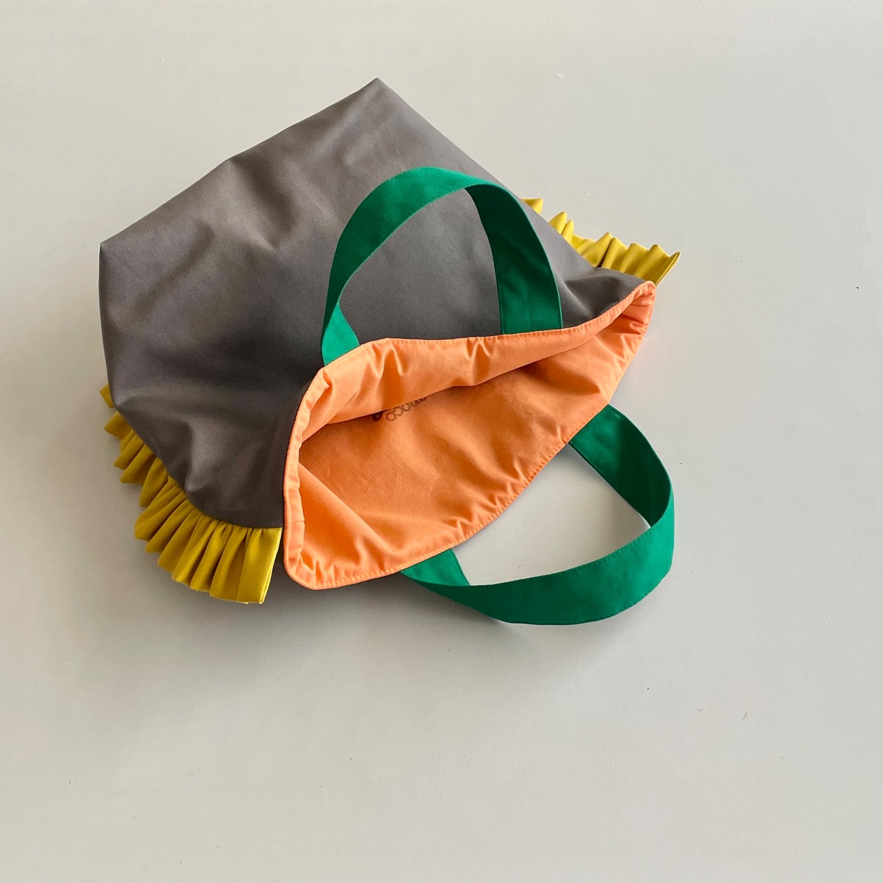 【モコ市販売】四角い マチ つき フリルトートバッグ Sサイズ (コットン)