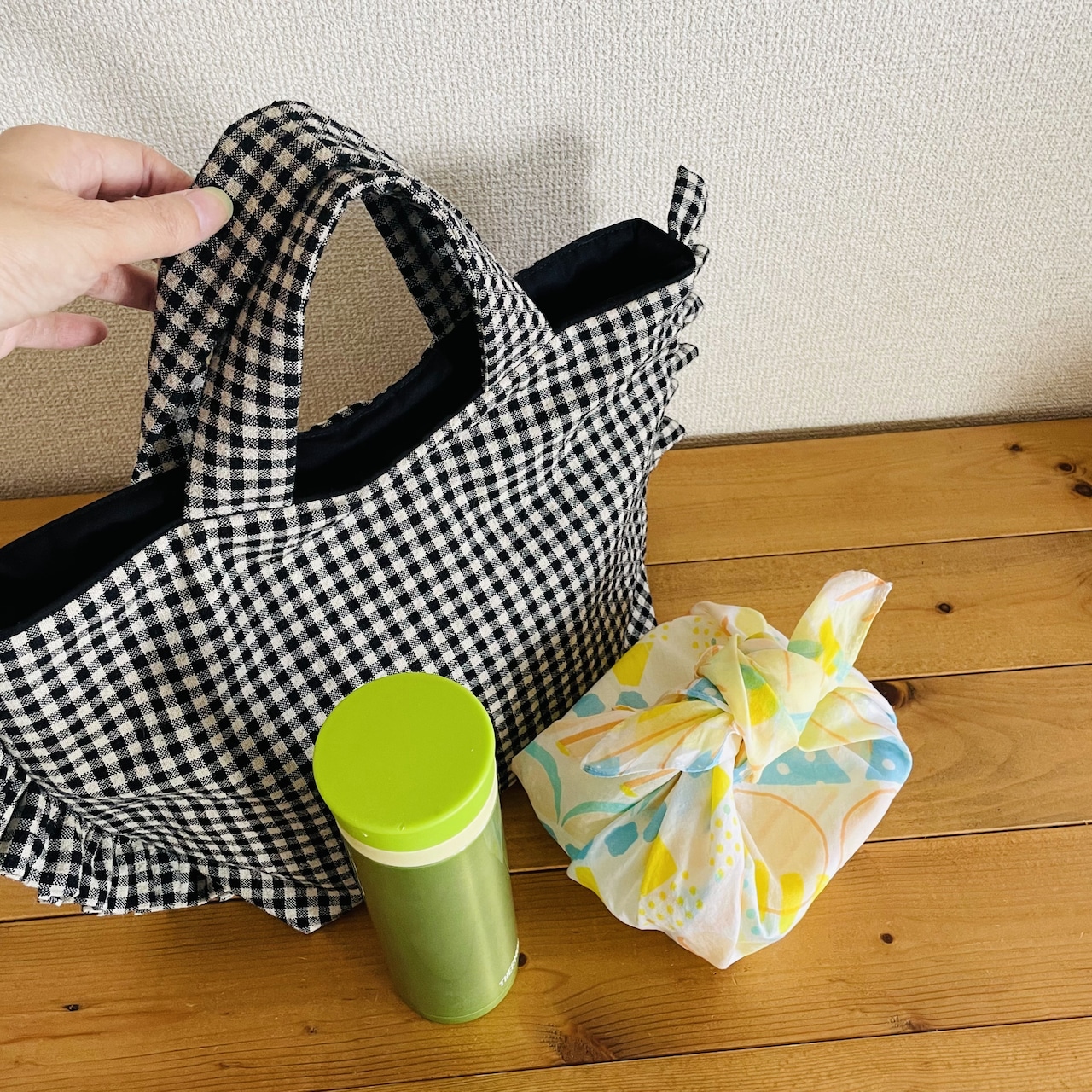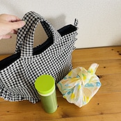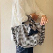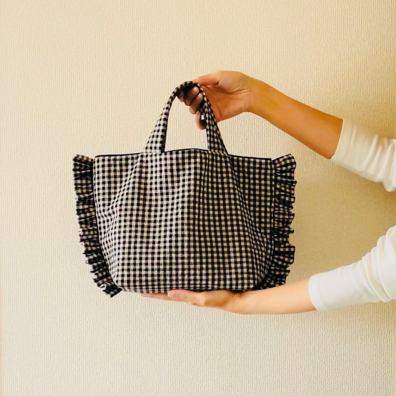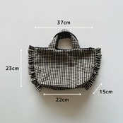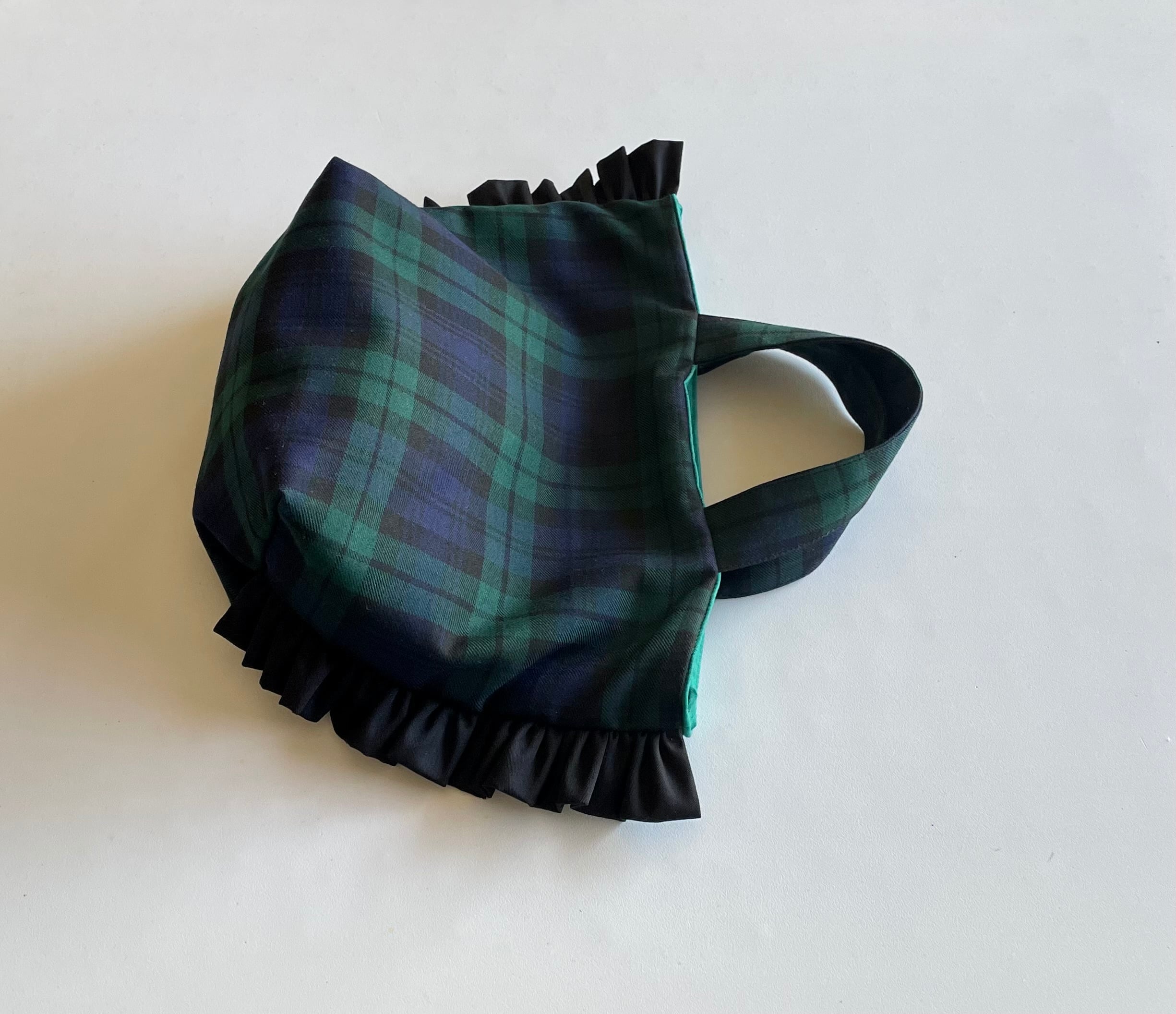【モコ市販売】四角い マチ つき フリルトートバッグ Sサイズ やわらかタータンチェック