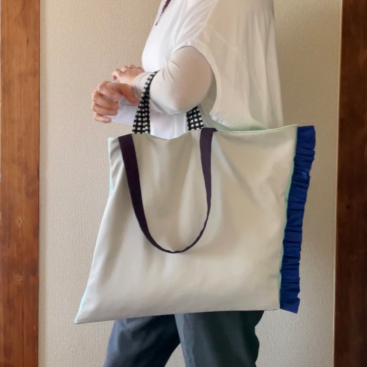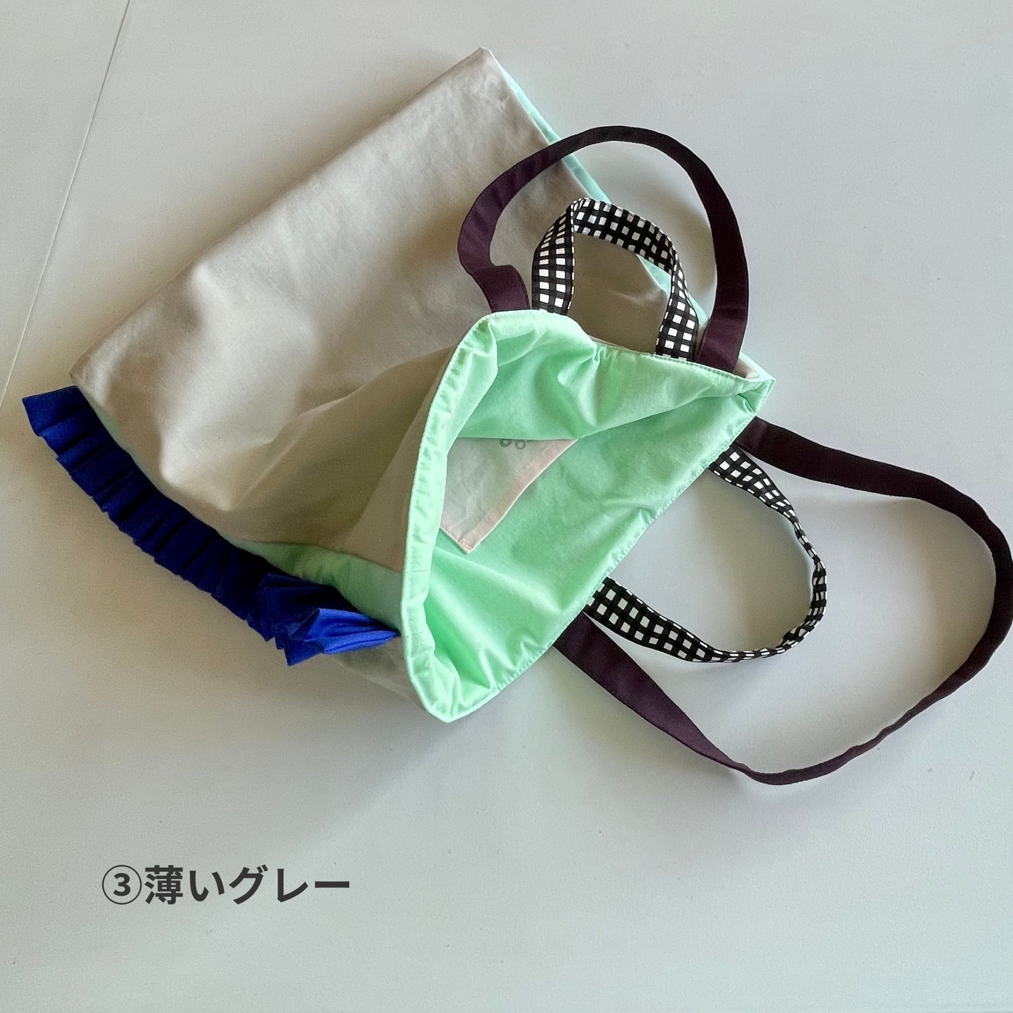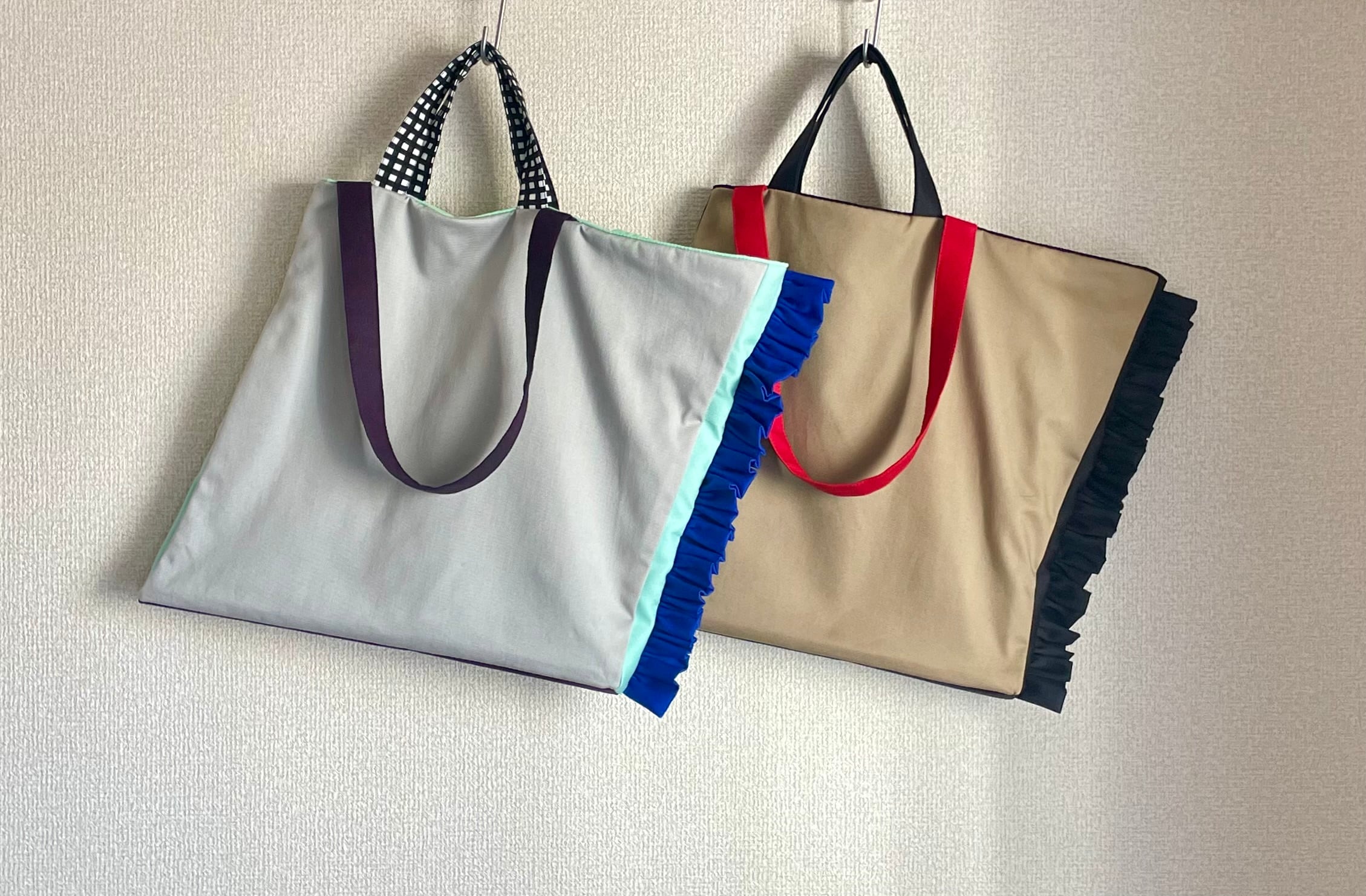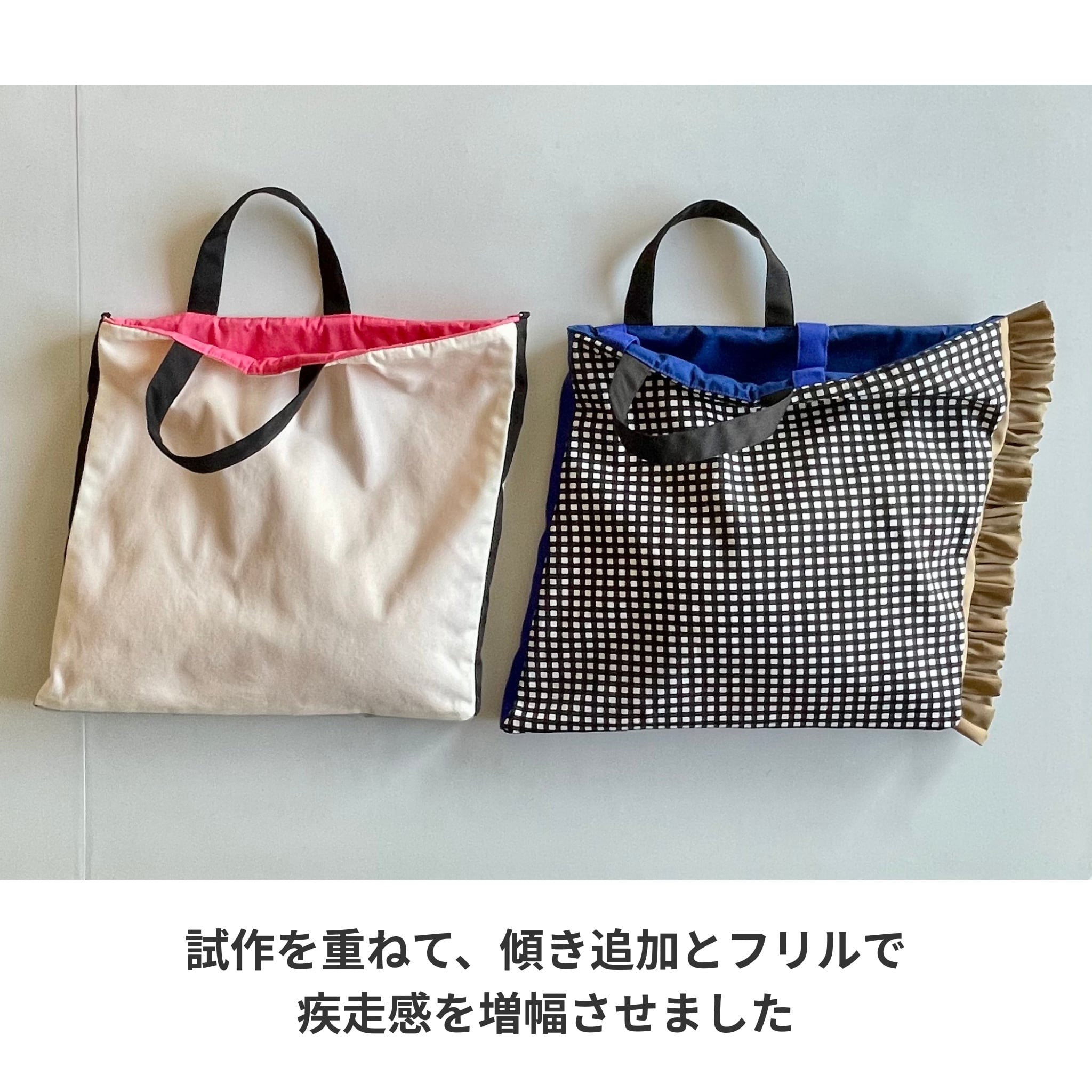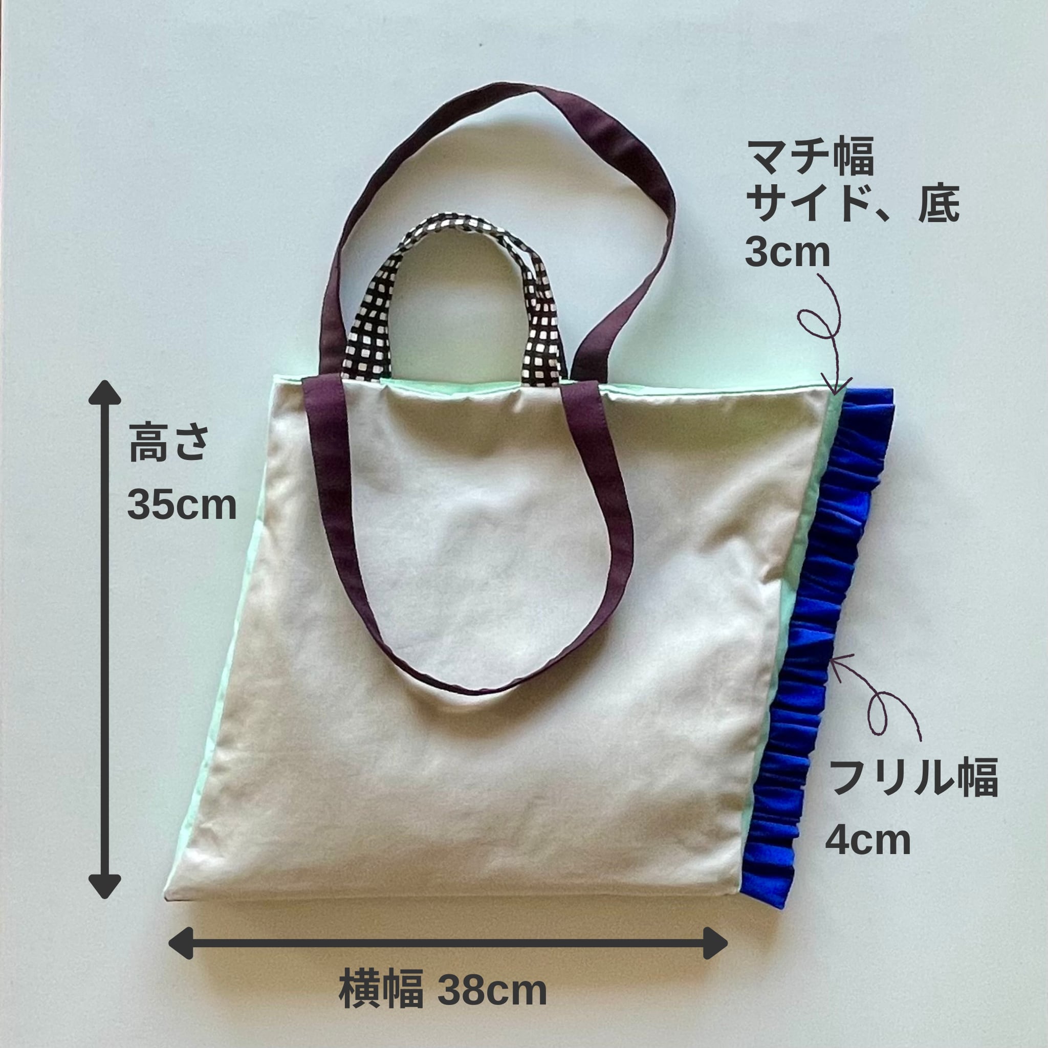 ズレズレ四角の速そうなフリルトート【配色オーダーも可能】(コットン)