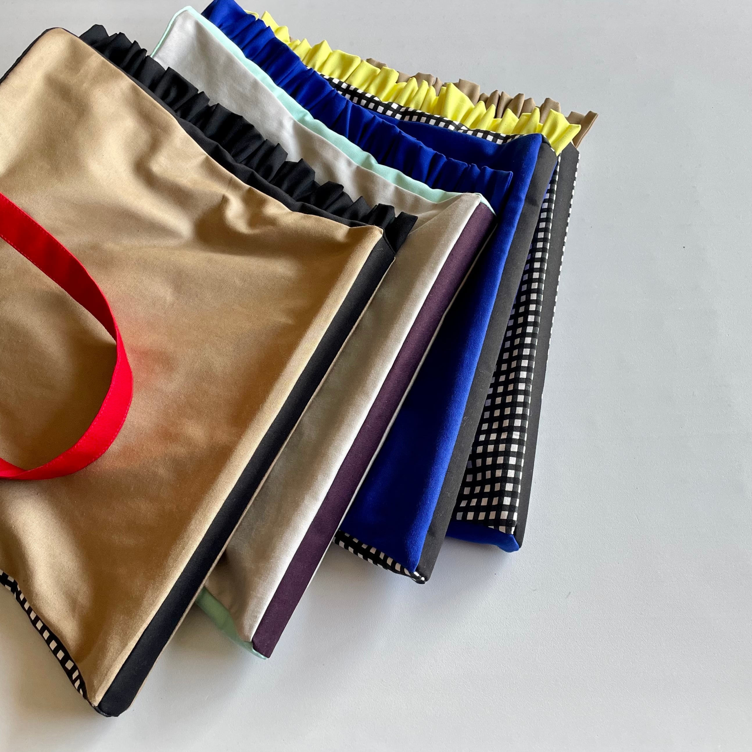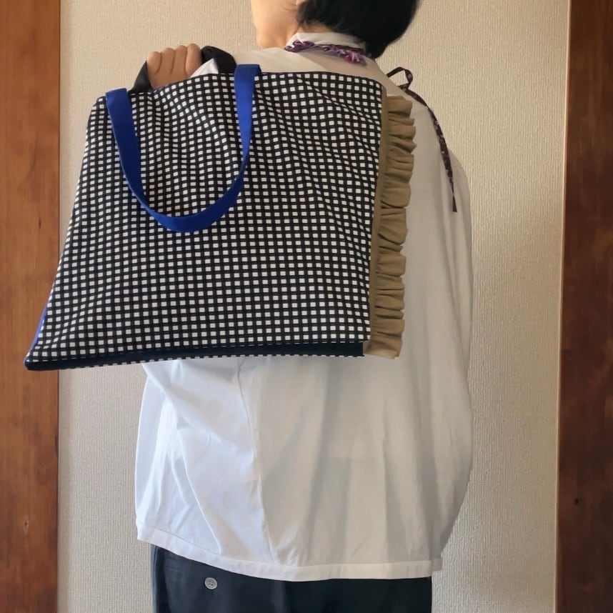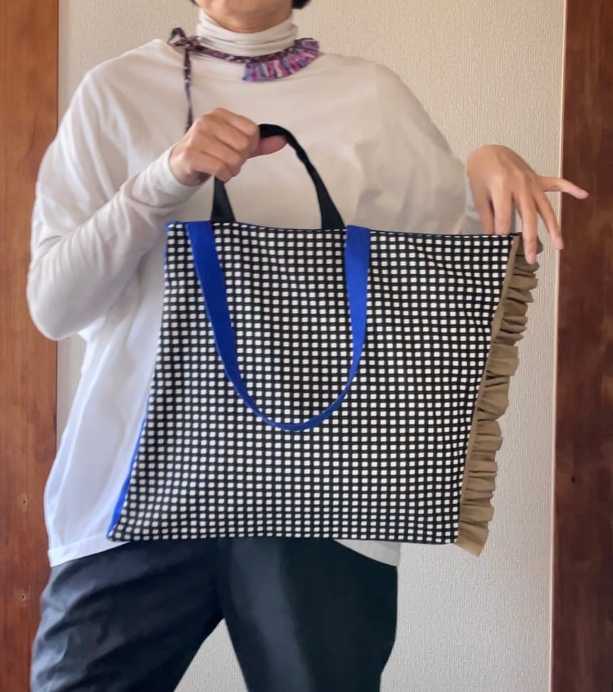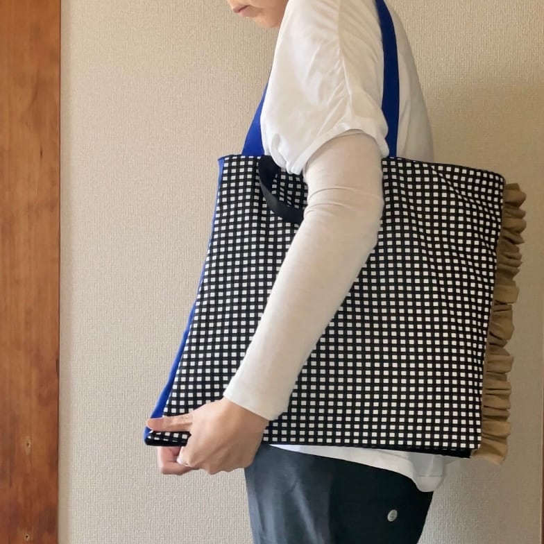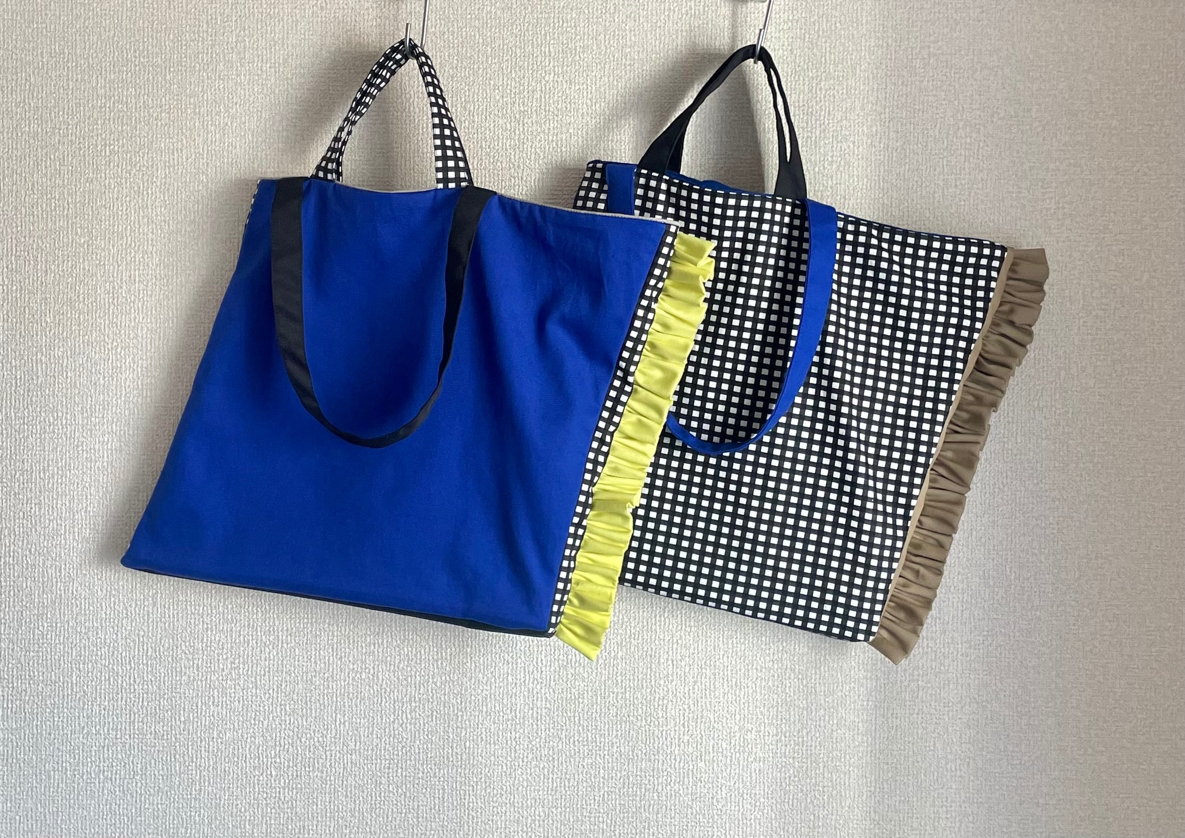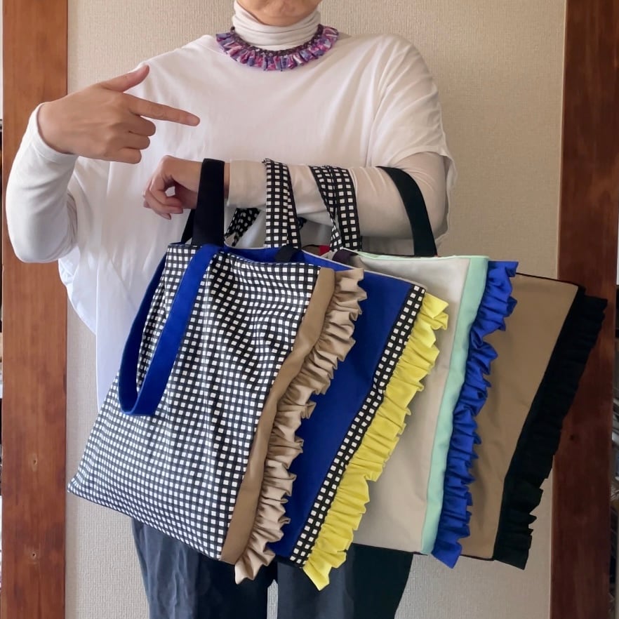 ズレズレ四角の速そうなフリルトート【配色オーダーも可能】(コットン)