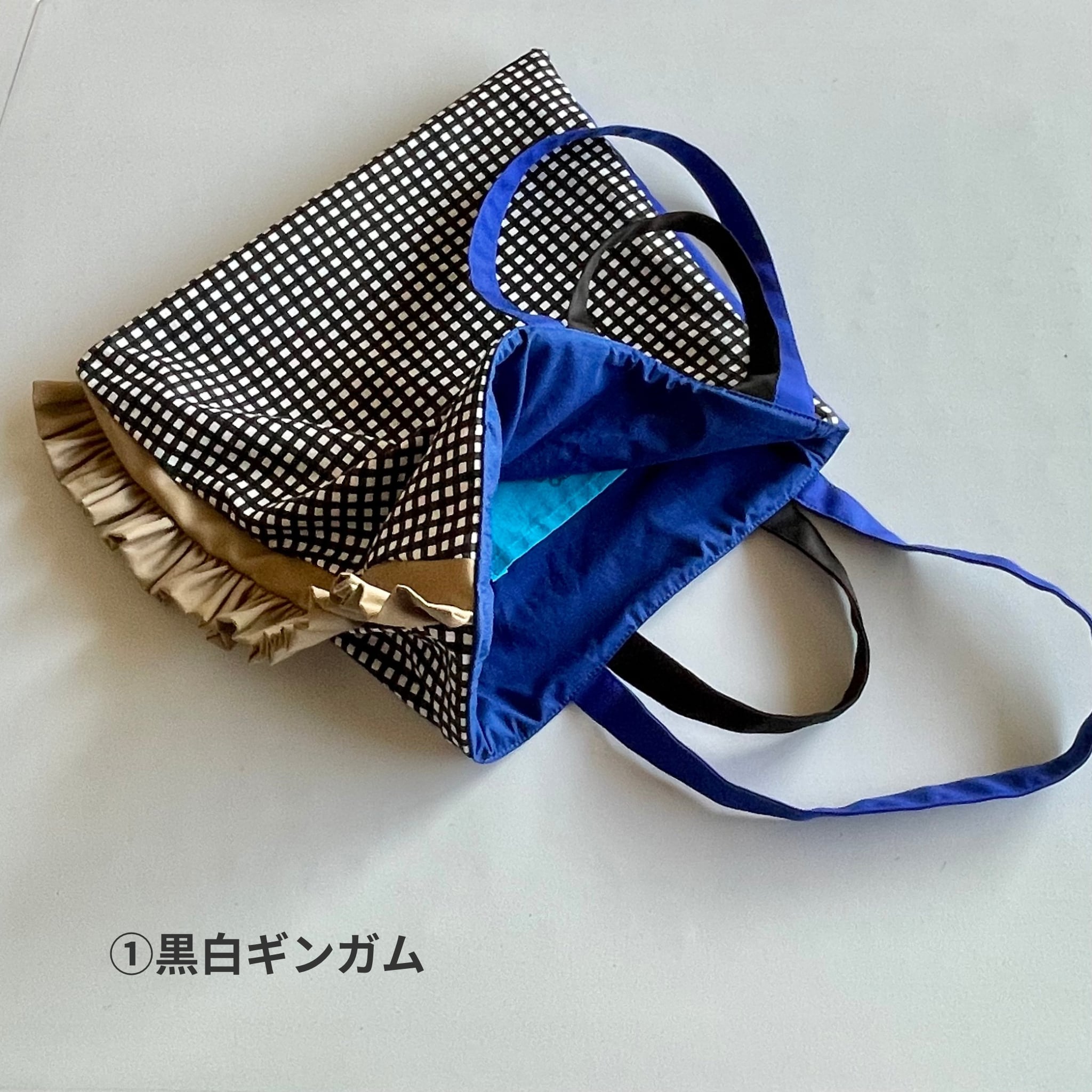 マチ(黒、黒白ギンガム)、フリル(くすみレモン)