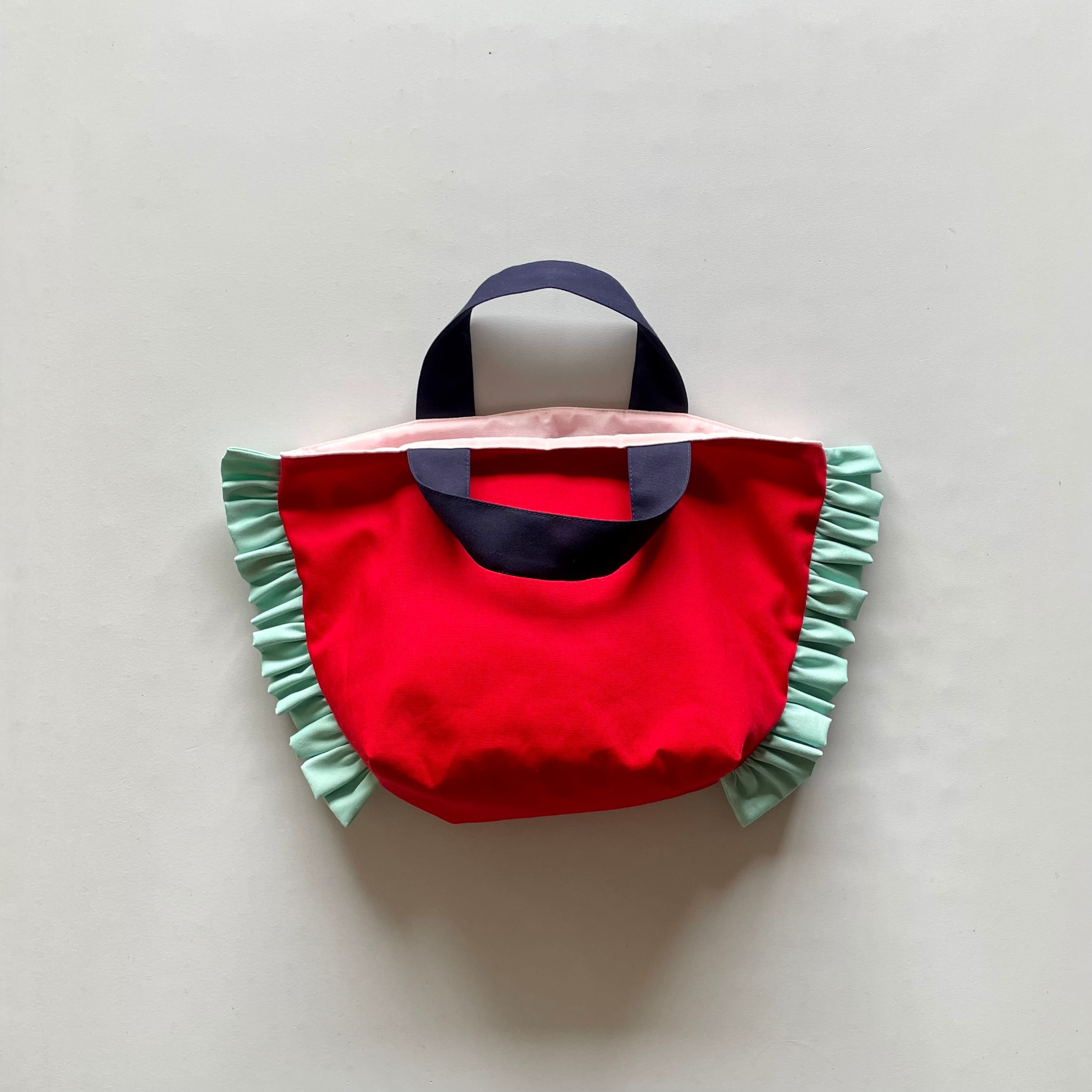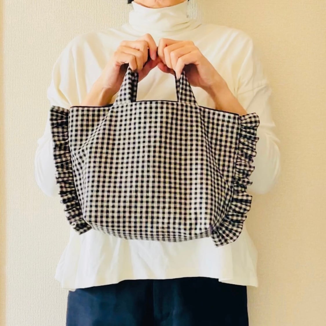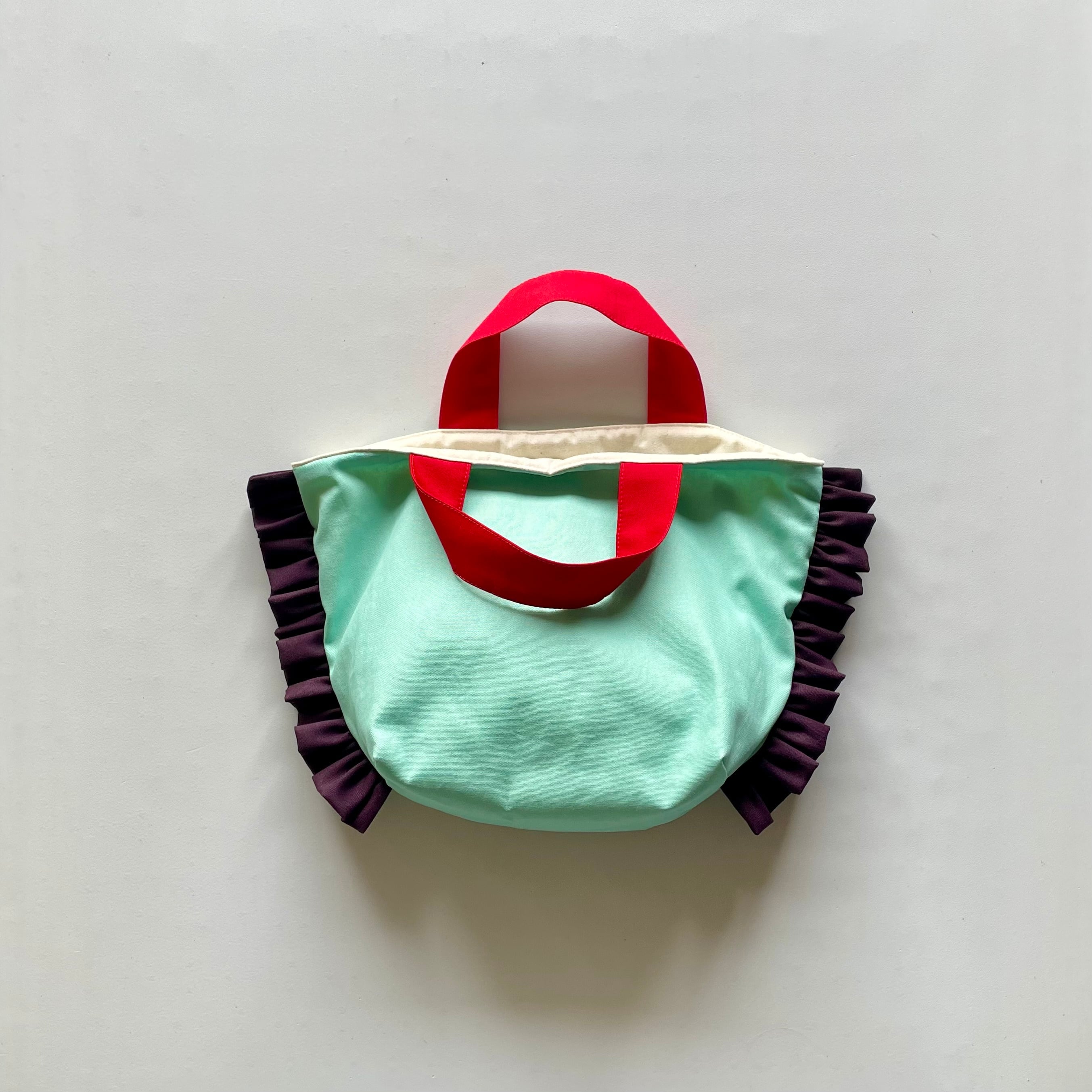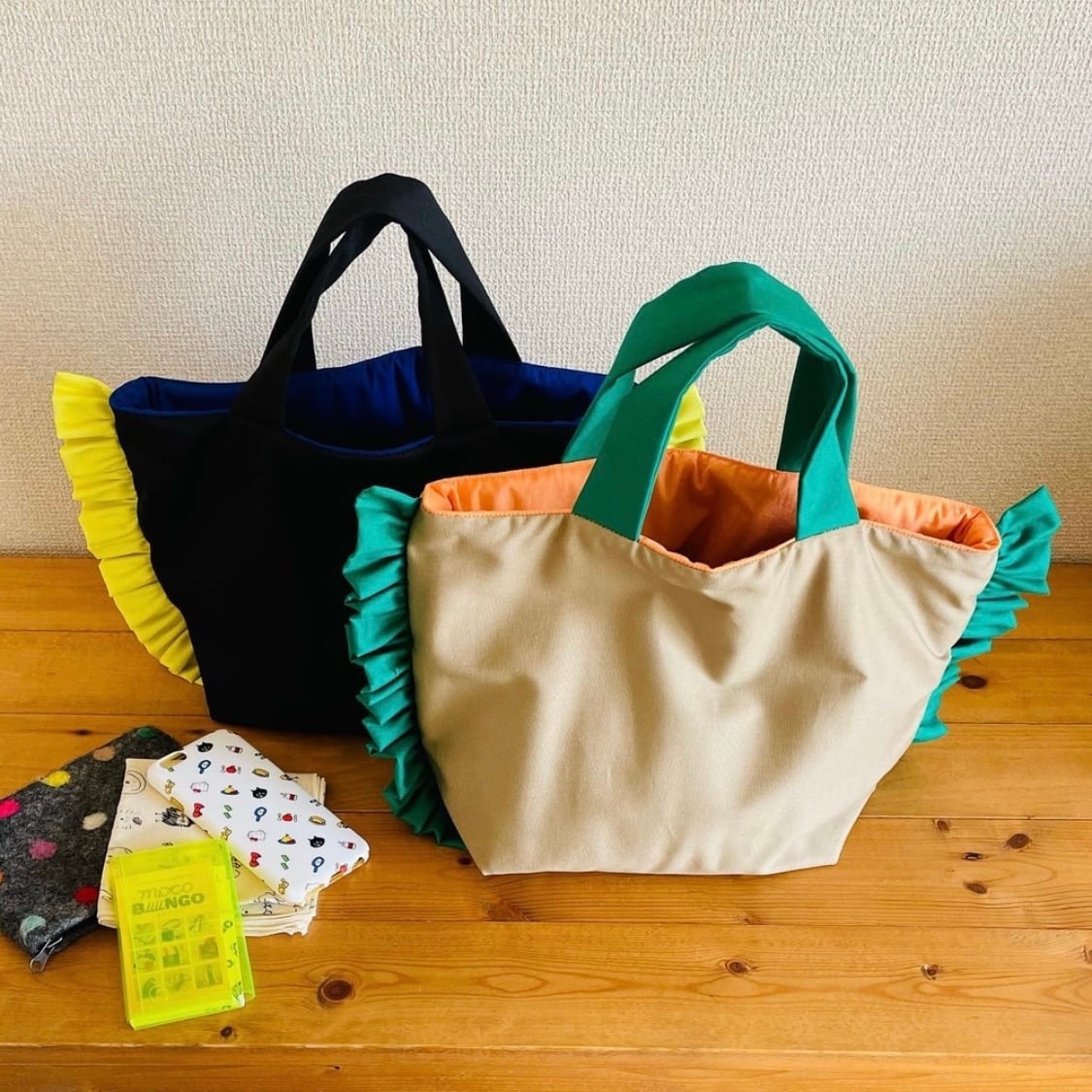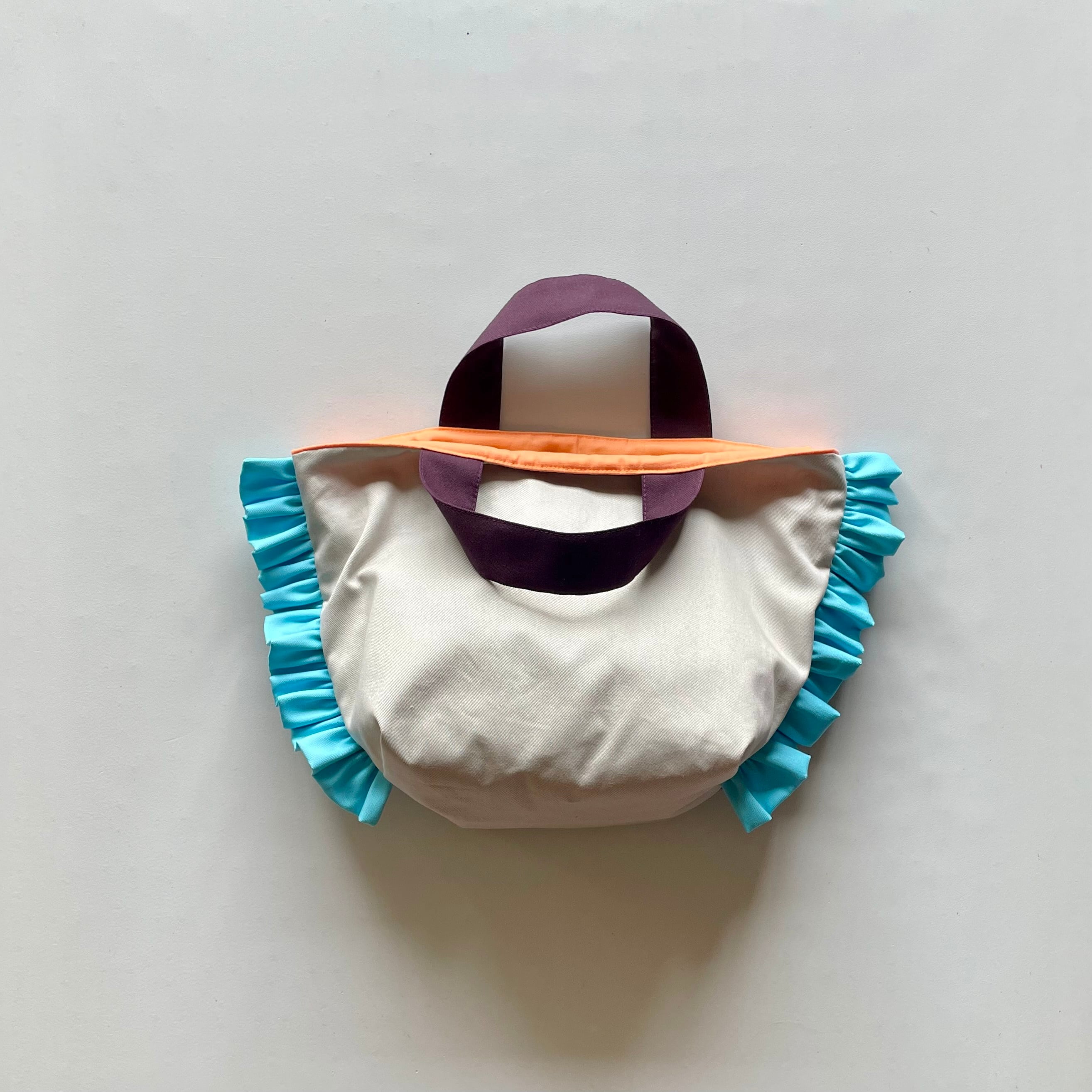 【即納モコ市】四角い マチ つき フリルトートバッグ Sサイズ(コットン)