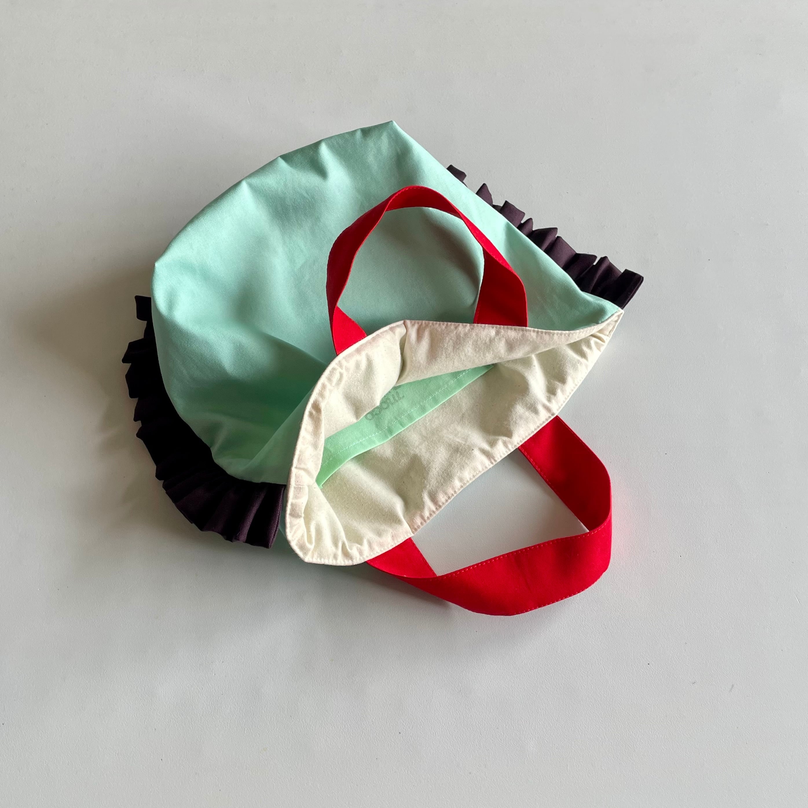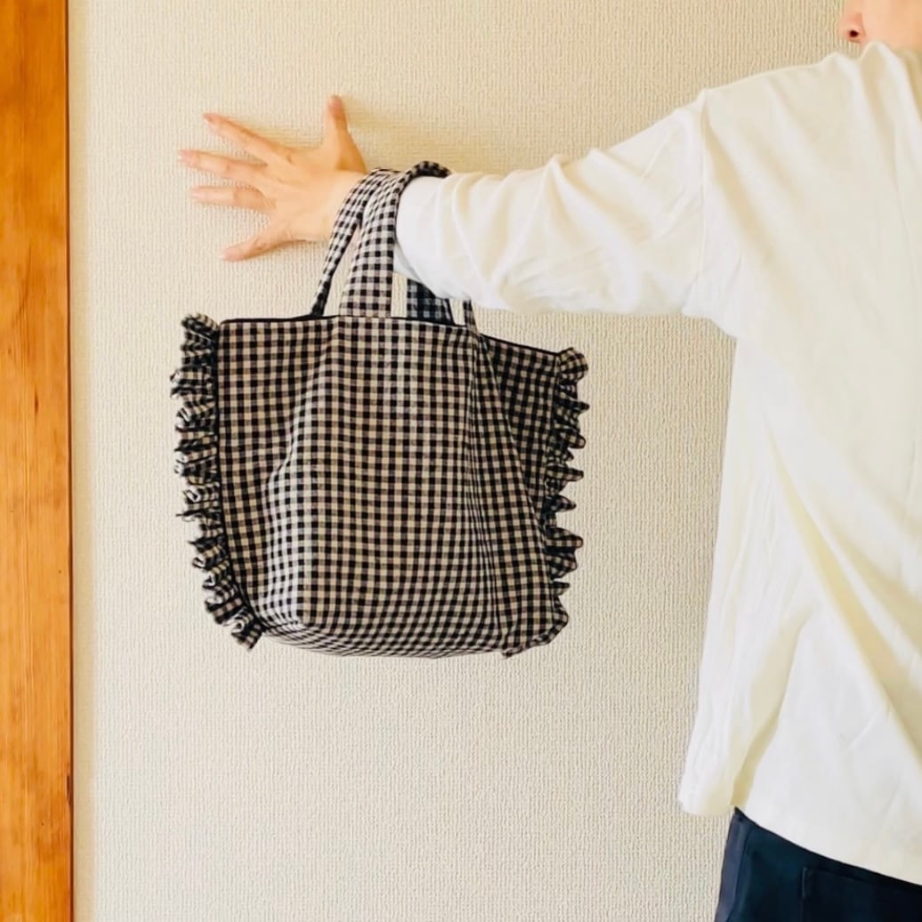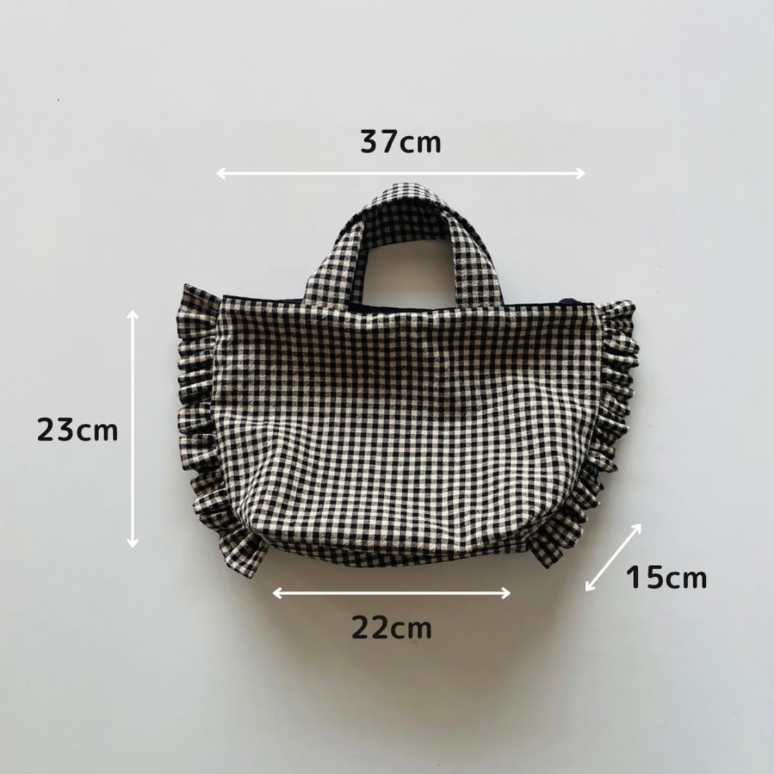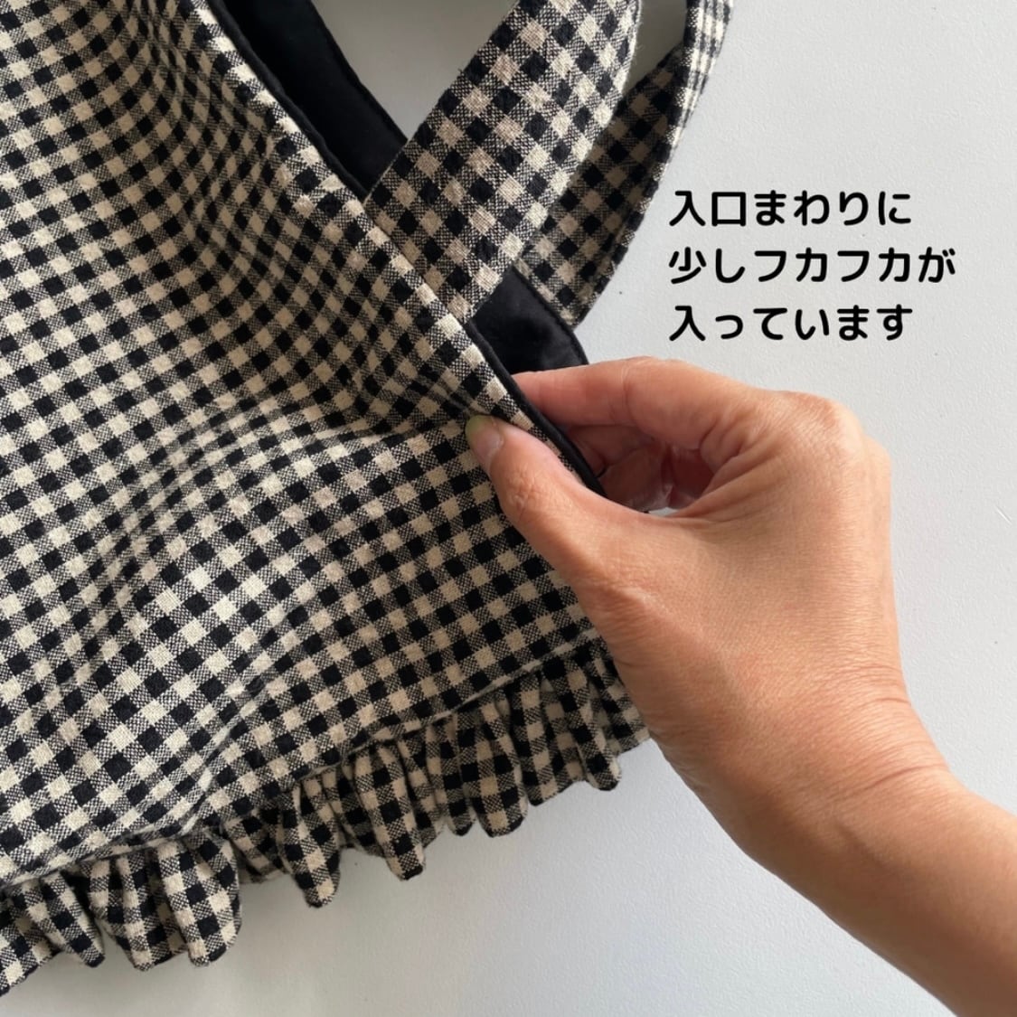 【即納モコ市】四角い マチ つき フリルトートバッグ Sサイズ(コットン)