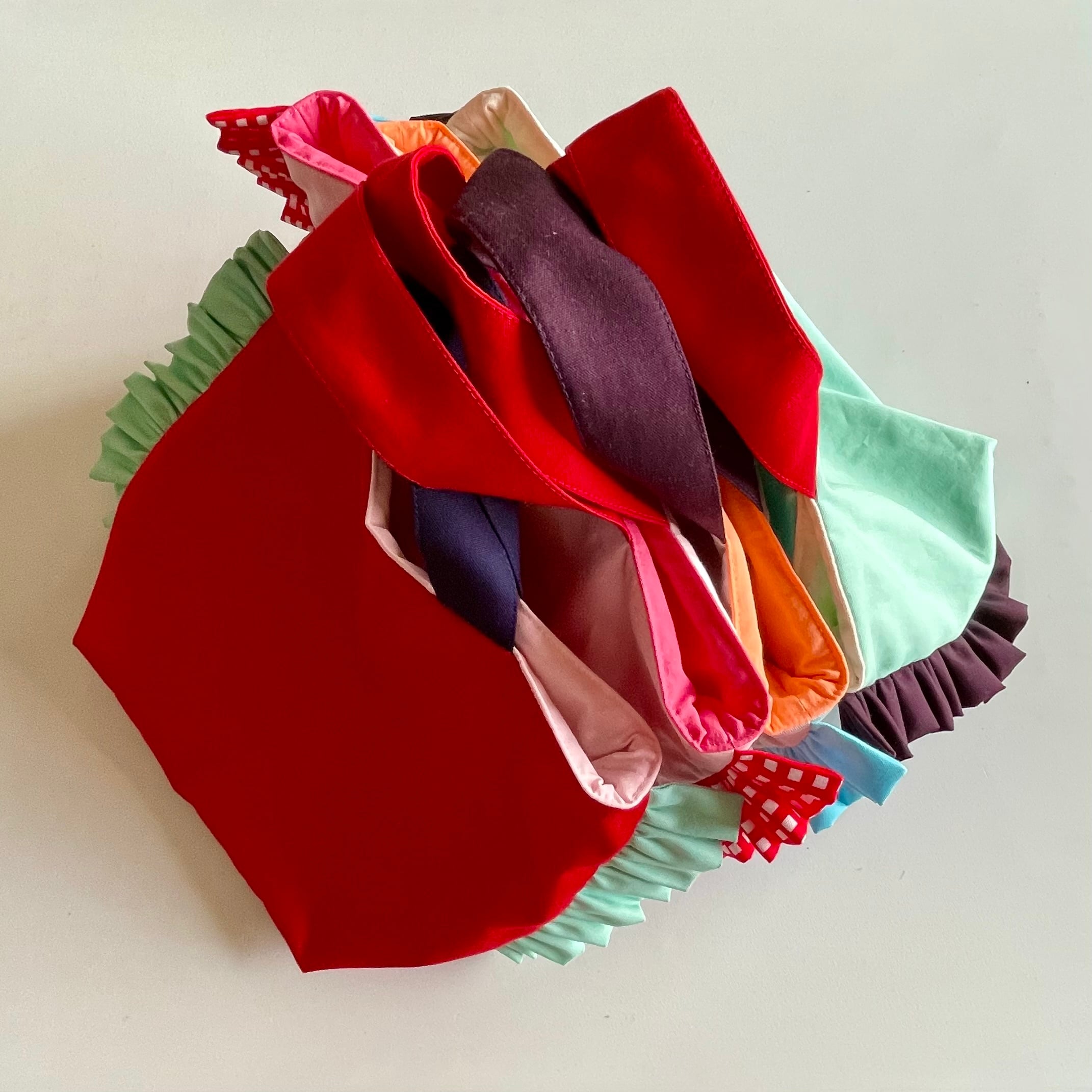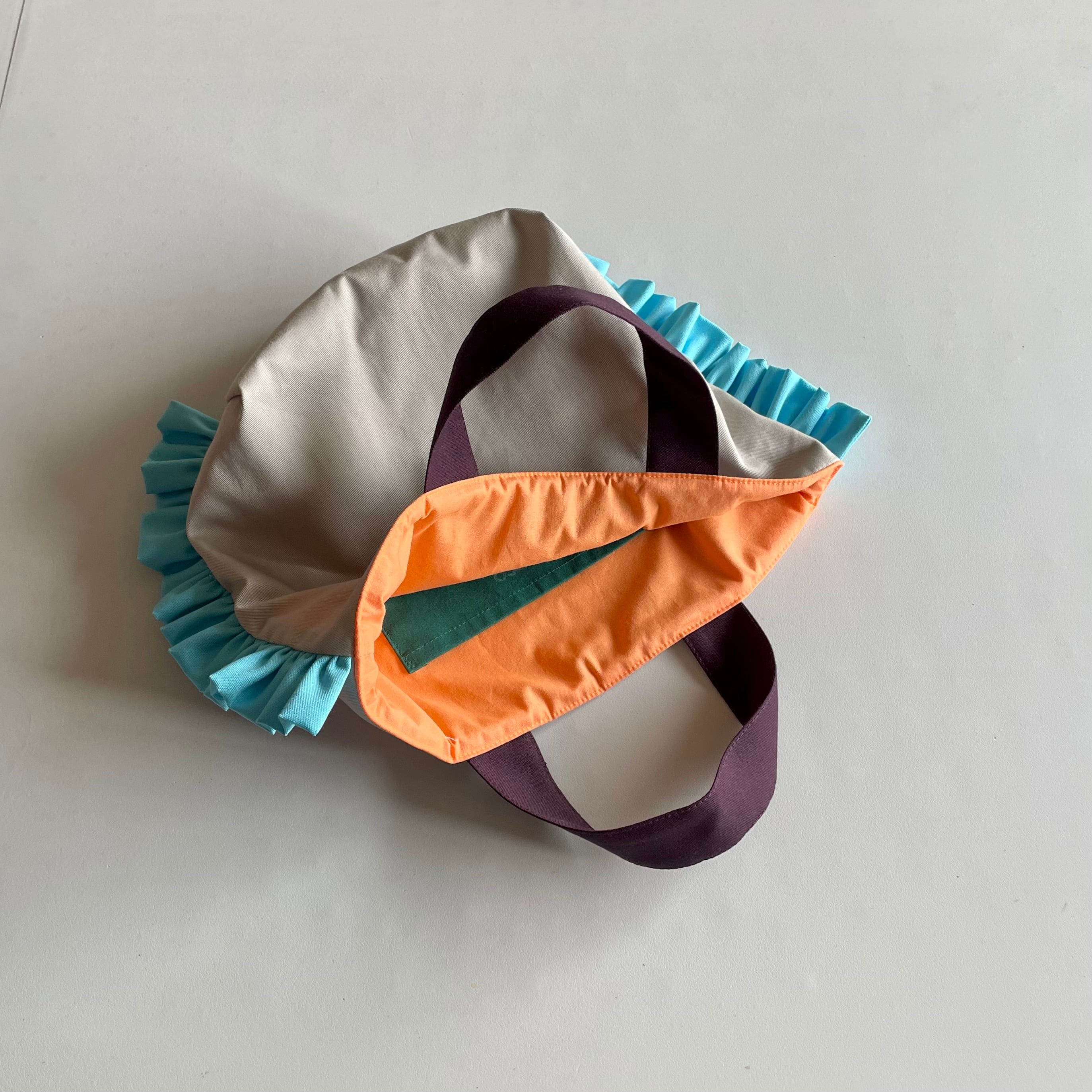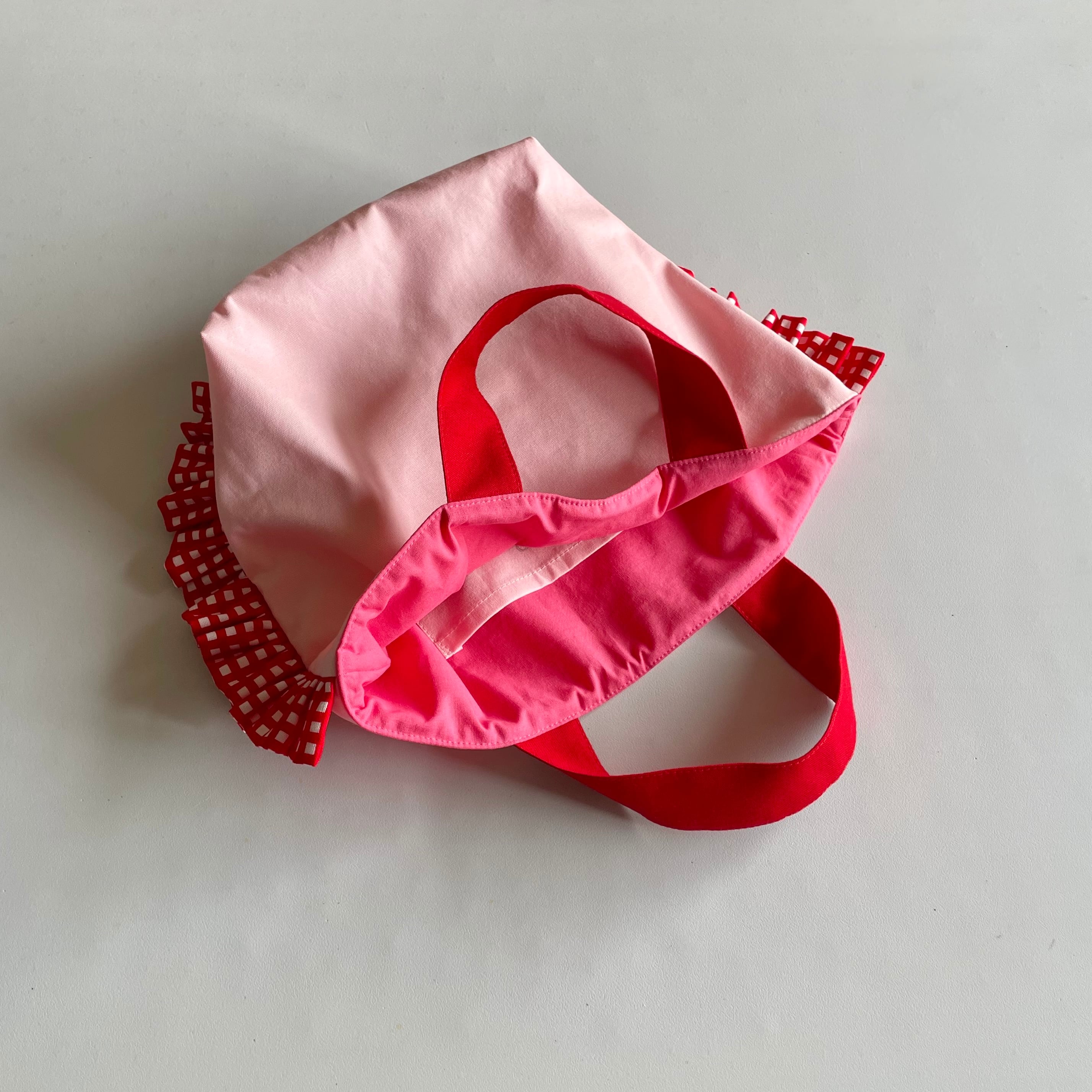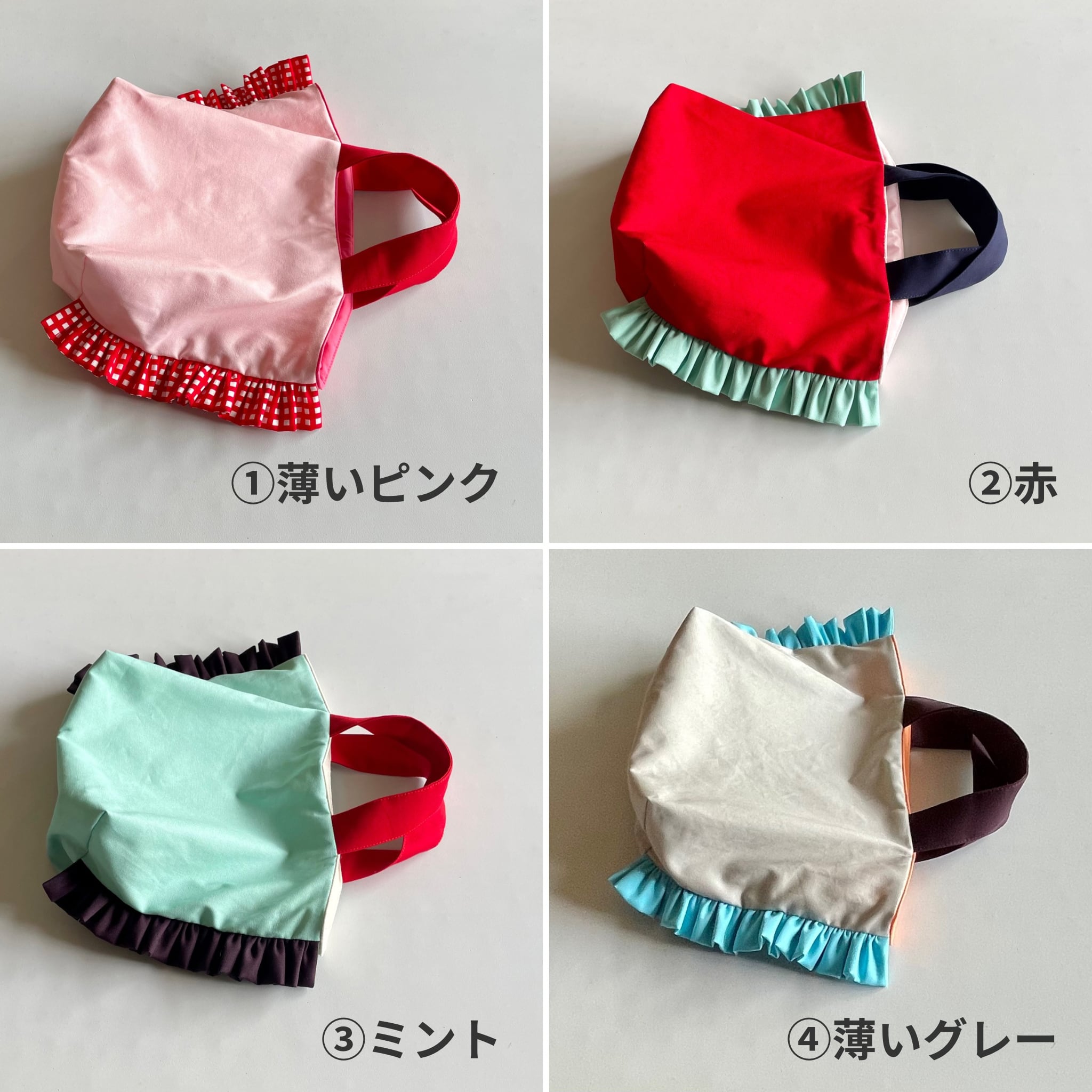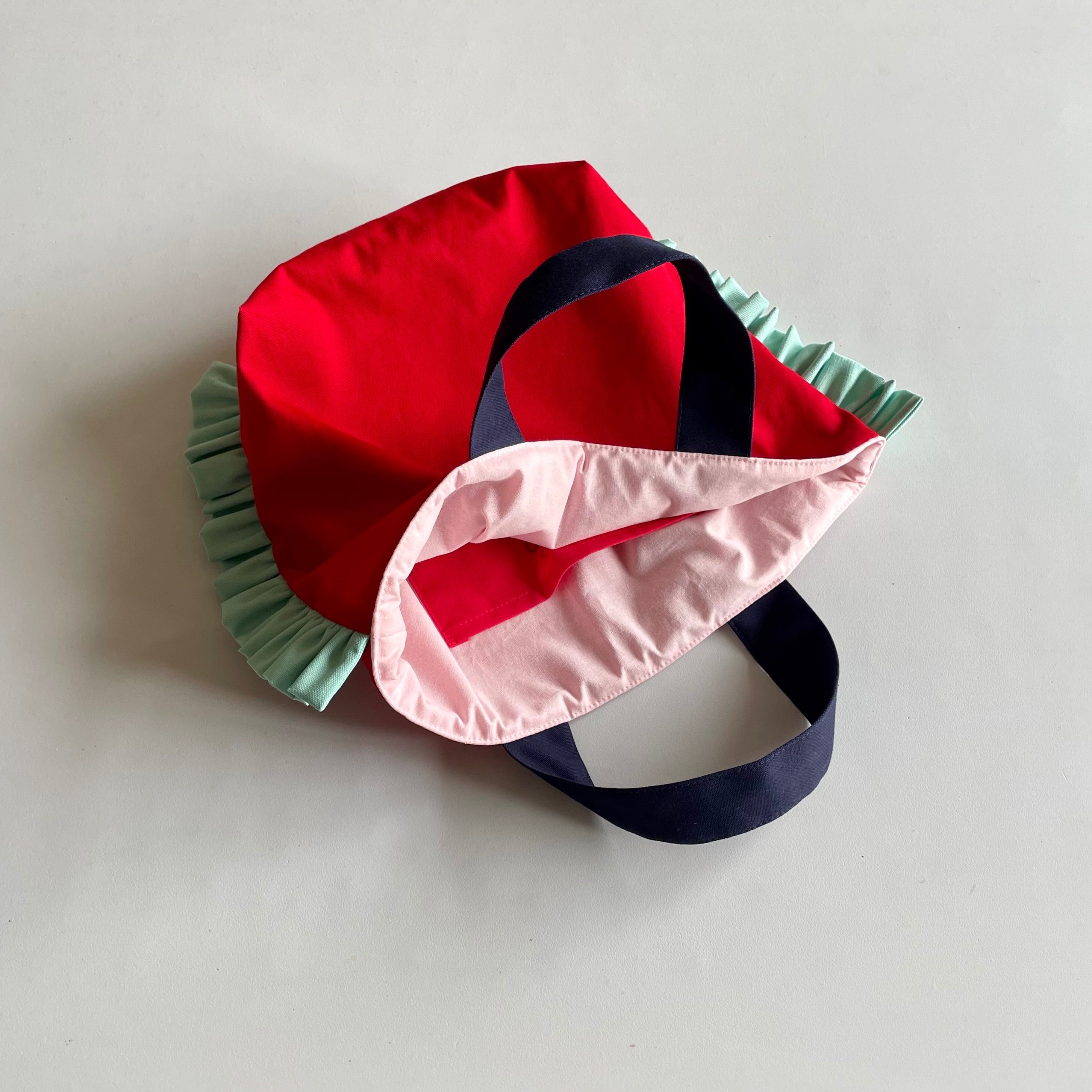 【即納モコ市】四角い マチ つき フリルトートバッグ Sサイズ(コットン)