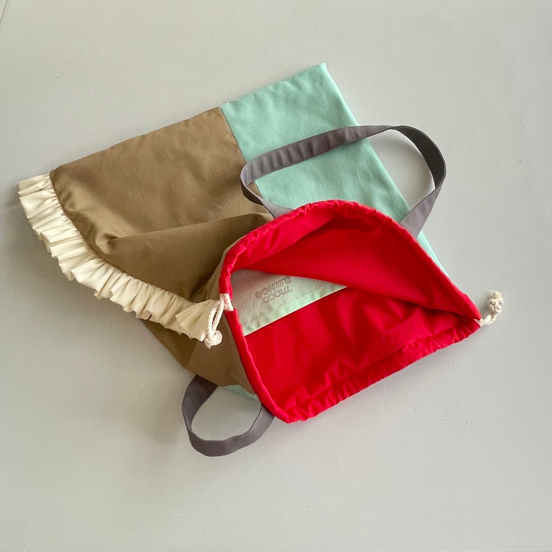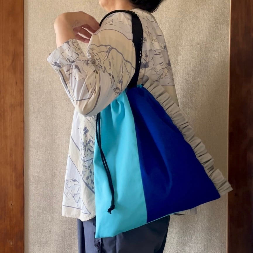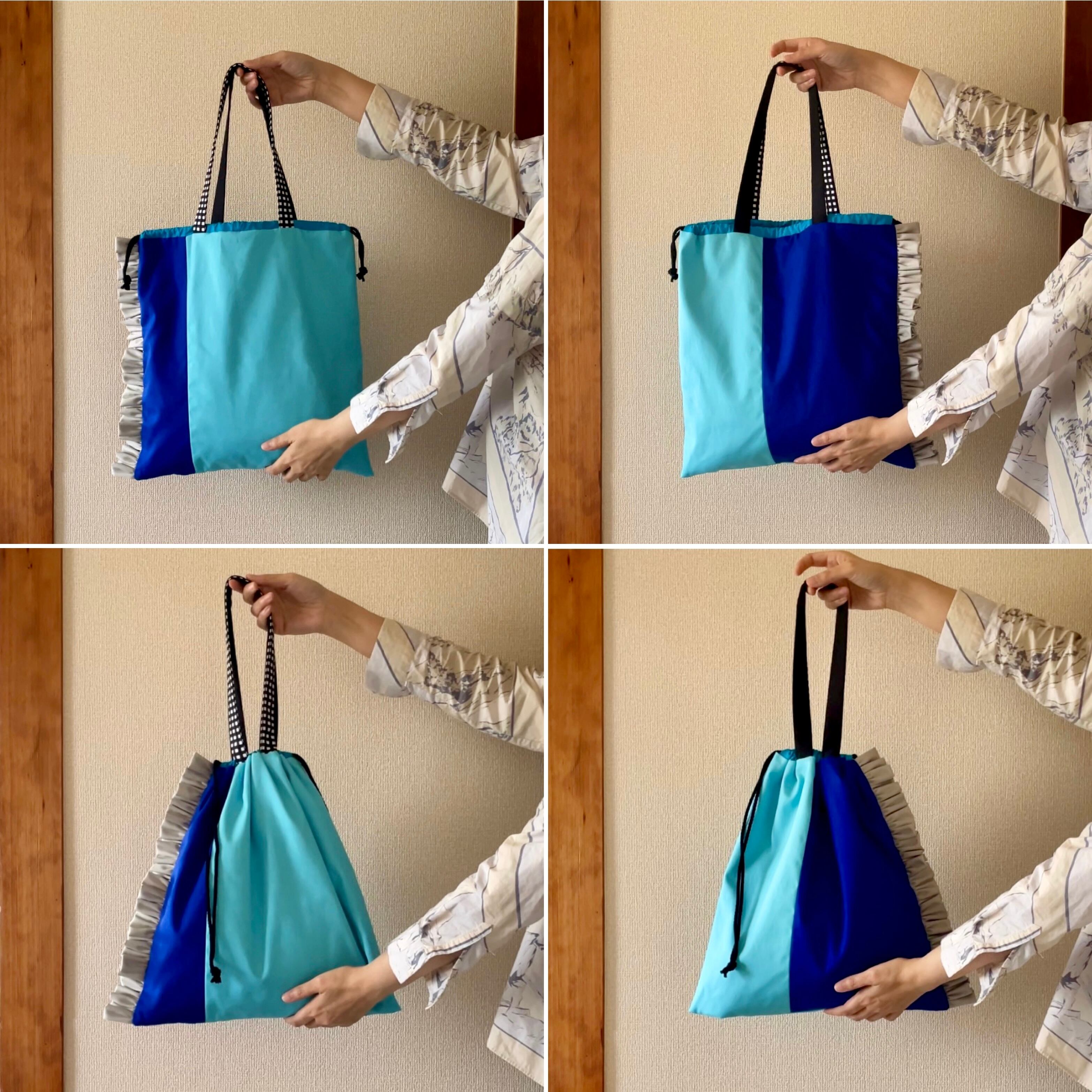 【即納モコ市】\すっぴんくったり/3枚パネルの 2way フリル トートバッグ(コットン+内側コットン)
